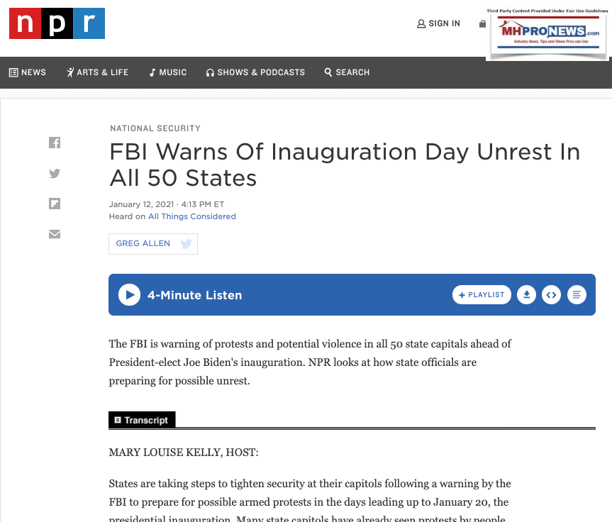 Stay tuned for more of what is ‘behind the curtains’ as well as what is obvious and in your face reports. It is all here, at the runaway largest and most-read source for authentic manufactured home “Industry News, Tips, and Views Pros Can Use” © where “We Provide, You Decide.” © ## (Affordable housing, manufactured homes, reports, fact-checks, analysis, and commentary. Third-party images or content are provided under fair use guidelines for media.) (See Related Reports, further below. Text/image boxes often are hot-linked to other reports that can be access by clicking on them.)