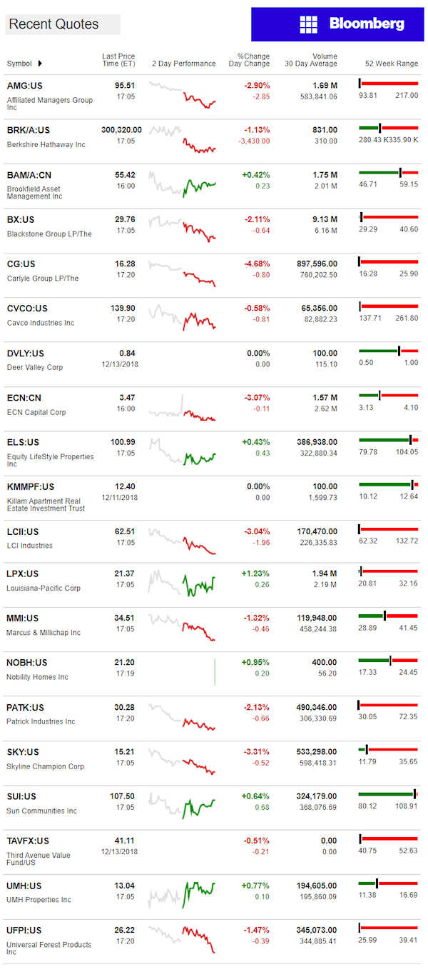 For all the scores and highlights on tracked manufactured home connected stocks today, see the Bloomberg graphic, posted below.