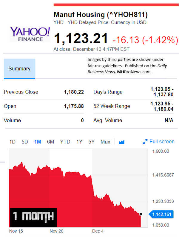 The evolving Daily Business News market report sets the manufactured home industry’s stocks in the broader context of the overall markets. Headlines – at home and abroad – often move the markets. So, this is an example of “News through the lens of manufactured homes, and factory-built housing.” ©