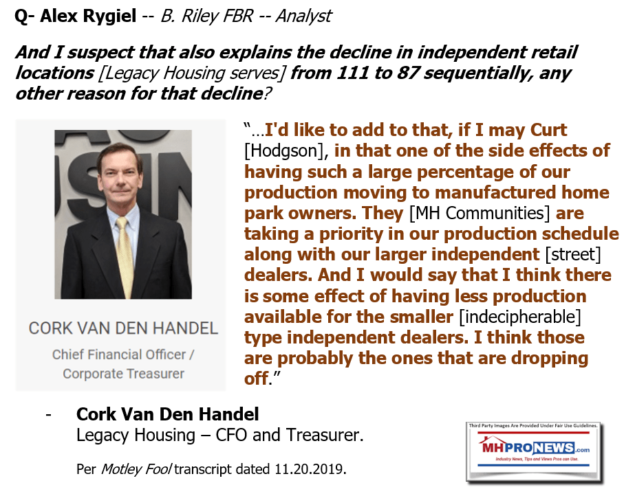 Let’s note that while we are quoting Legacy, their leadership team may or may not value our use of their pull quotes in this fashion. Put differently, we aren’t speaking for them, but MHProNews is accurately citing their remarks. That disclaimer said, the point isn’t that Hodgson or Legacy intended to undermine MHI’s claims. They may not have been thinking about MHI at all as they made the statements cited above. But that very point is makes their remarks all the more significant.