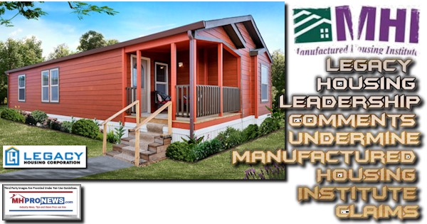 The Arlington, VA based Manufactured Housing Institute (MHI) faces several ongoing problems. One of them is that they are routinely being contradicted by their own statements or that of some of their publicly traded firm. Legacy Housing Corp (LEGH) is arguably an example of that credibility challenge.
