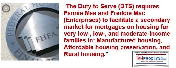 Given the law and the clear need for more financing options, how can MHI leaders or their surrogates say with a straight face that they are effective or “superb?” Enforcing the law should be the steady demand by MHI. If FHFA and the GSEs fail to enforce the law, then MHI should logically join MHARR and others in calling for Congressional oversight hearings and other investigations.