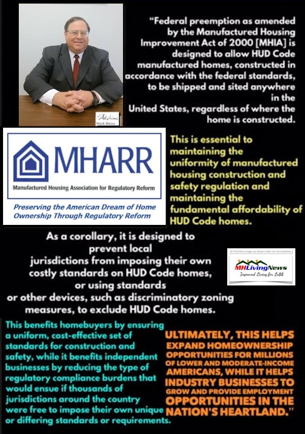 Furthermore, to the points obliquely raised by Legacy Housing or others about placement barriers. If MHI really wanted the Manufactured Housing Improvement Act (MHIA) to be fully enforced and to have the”enhanced preemption” provision of the law to be widely known and fully enforced, then why don’t those words even appear on their website?