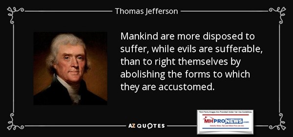 When the status quo is merely accepted, instead of thoughtfully questioned, several things can occur. The system has had a stacked deck for years, as the Arianna Huffington’s book reminds us. How effective has the system been for the masses of Americans? If the system isn’t working as advertised, isn’t it time to plan for healthier changes? During both Democratic and Republican administrations, despite claims by both that they desire to see more home ownership, the overall rate in the U.S. is lower today than in 2000. This is but one of several possible examples of why failure to implement the 2000 Reform law matters. https://www.manufacturedhomepronews.com/whistleblower-hud-nominee-marcia-fudge-senators-collusion-coordinated-by-manufactured-housing-institute-video-mhi-evidence/