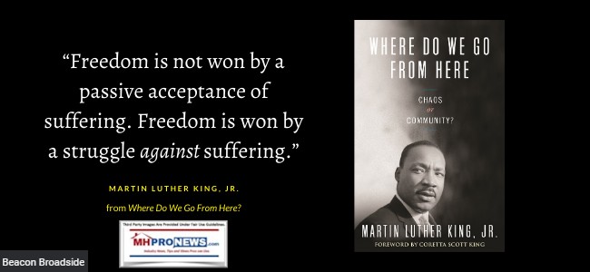 Thinking “intensively” – as King admonished – but aiming to think through a moral lens, which he also agreed was essential – is what MHProNews and our MHLivingNews sister-site strive to do day by day. Millions are too busy with the press of their own lives to dig deeply into problems we face today. Those problems did not suddenly pop up. Like weeds in an otherwise nice lawn, the seeds of those problematic issues existed before the weed appeared.