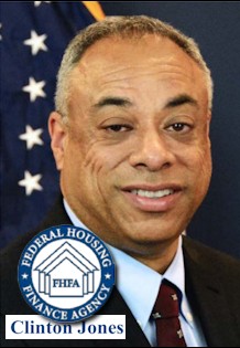 Per a download from the FHFA website, “Clinton Jones is the Senior Advisor for Legal Affairs and Policy to FHFA Director Mark Calabria. Prior to joining FHFA, Jones was a senior staff member of the U.S. House of Representatives’ Committee on Financial Services. There, he served in various positions, including General Counsel and Senior Counsel for Housing and Insurance over a 24-year period. Jones was also a Vice President at Fannie Mae and prior to that served as an Attorney Advisor for the U.S. Department of Housing and Urban Development. He is currently an adjunct faculty member at Howard University. Jones received his J.D. and Masters in City & Regional Planning and Bachelor of Science degrees from the University of North Carolina at Chapel Hill.”