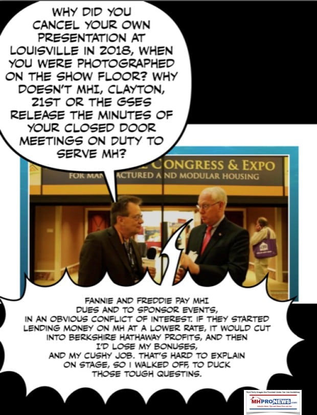 It must have been hellish for Gooch’s predecessor, MHI President and CEO Richard “Dick” Jennison to stand on stage in Louisville and have to publicly praise at – 21st’s Tim William’s direction – both this writer and MHProNews. Jennison had spent significant time with me. He frankly showed me some things that arguably later came back to bite him.