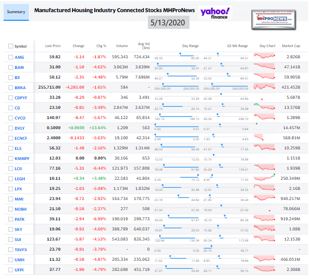 Manufactured Housing Industry Investments Connected Closing Equities Tickers