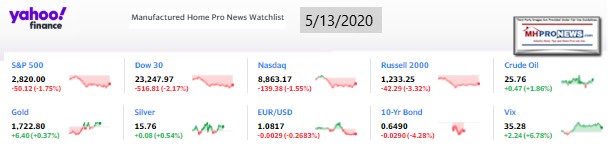 Those items will be our featured focus. They are found beyond our signature left-right media headlines, standard business nightly thought-provoking fare, and our standard market snapshots. Note to our growing numbers of new readers: manufactured housing industry connected equities are found beyond the related reports.
