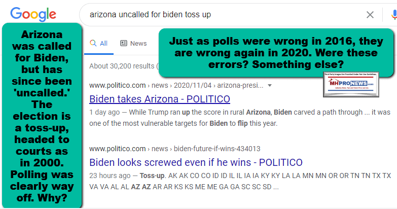 As was noted above, the 2020 presidential race is still in doubt and may prove to be so for days or perhaps weeks on end. MHProNews receives information and input from Democratic as well as Republican sources, along with information from minor political or other groups. These are sifted for insights, mindful of that ancient wisdom of separating the wheat from the chaff.