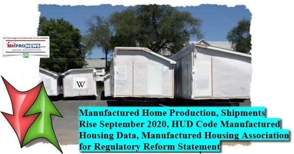 The official statistics for the U.S. Department of Housing and Urban Development (HUD) have provided national HUD Code manufactured housing production and shipment data for September 2020. That data has been compiled and analyzed in brief in a report by the Manufactured Housing Association for Regulatory Reform (MHARR), which is found below. The arrows that reflect which state is ‘up or down’ were added by MHProNews. Additional information will follow the MHARR report.