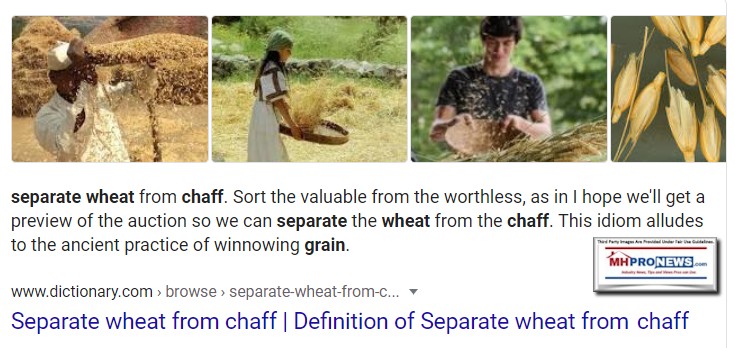 But that is not to elevate some source to an unmerited degree of confidence. Nor is it to blindly trust a given source. MHProNews has for years touted the simple notion of sifting the wheat from the chaff.