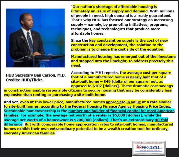 Stay tuned for more of what is ‘behind the curtains’ as well as what is obvious and in your face reports. It is all here, at the runaway largest and most-read source for authentic manufactured home “Industry News, Tips, and Views Pros Can Use” © where “We Provide, You Decide.” © ## (Affordable housing, manufactured homes, reports, fact-checks, analysis, and commentary. Third-party images or content are provided under fair use guidelines for media.) (See Related Reports, further below. Text/image boxes often are hot-linked to other reports that can be access by clicking on them.)