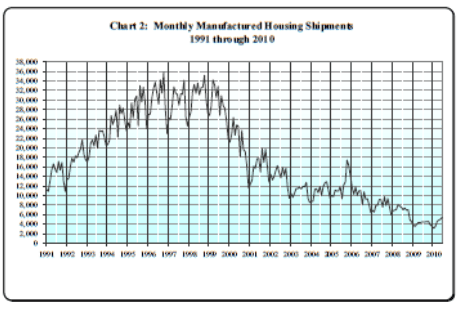 (graphic of Manufactured Housing’s shipment slide since 1998 courtesy of the MHI)