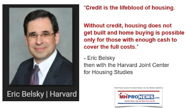 PhotoEricBelskyHarvardJCHousingStudiesQuoteCreditLifebloodHousingWithoutCreditHousingDoesNotGetBuiltHomeBuyingPossibleOnlyThoseEnoughCashCoverFullCostsQuotableQuoteMHProNews