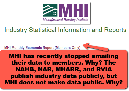 The Manufactured Housing Institute (MHI) has placed industry production statistics behind a pay-wall.