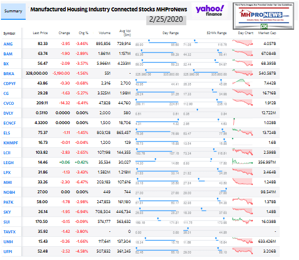 Manufactured Housing Industry Investments Connected Closing Equities Tickers