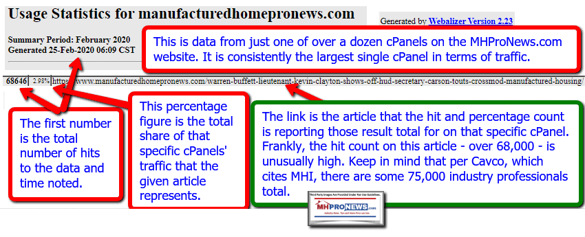 As noted in the teaser at the top of tonight’s feature, on September 23, 2019, MHProNews published a report on the Arabella Advisors. Per Webalizer, in the month of February, as of the date and time shown, an article that is 5 month-old has had some 3x more hits this month than both of the MHInsider articles spotlighted above had total views in this same month. Rephrased, their engagement with industry professionals is shockingly low, per their own viewer data. Let’s compare that to engagement on not our top articles, but on our #250th ranked MHProNews linked report.