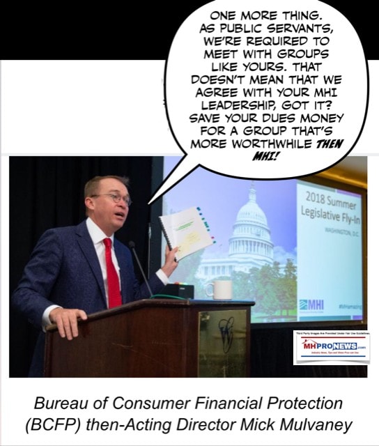 How do these MHI photos with Trump Administration officials impact YOUR bottom line? How do these photos help more Americans get more affordable lending and housing that they could own instead of rent? There are also photos of MHI ‘leaders’ with Obama Administration officials. Did those prior photos help the rank and file of our part of the affordable housing industry?