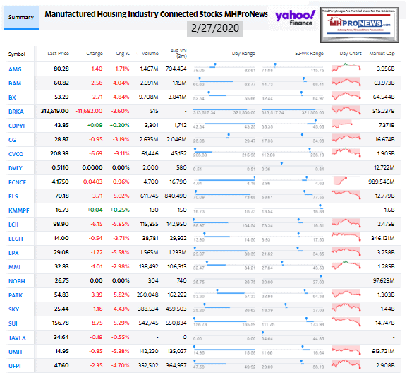 Manufactured Housing Industry Investments Connected Closing Equities Tickers