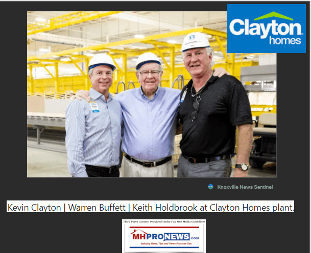 Berkshire Hathaway is the parent company to Clayton Homes, 21st Mortgage, Vanderbilt Mortgage and other factory built housing industry suppliers.