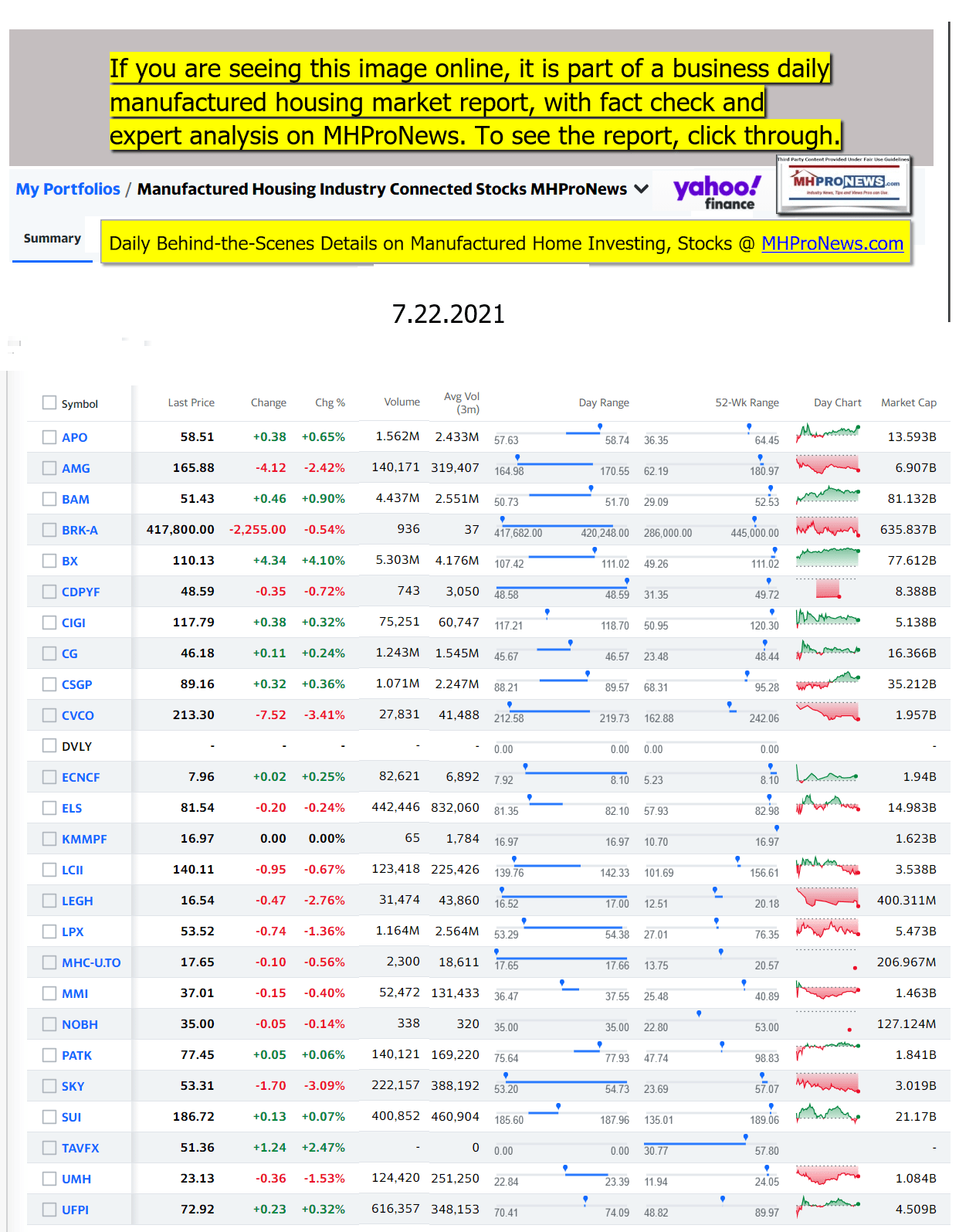 Manufactured Housing Industry Investments Connected Equities Closing Tickers