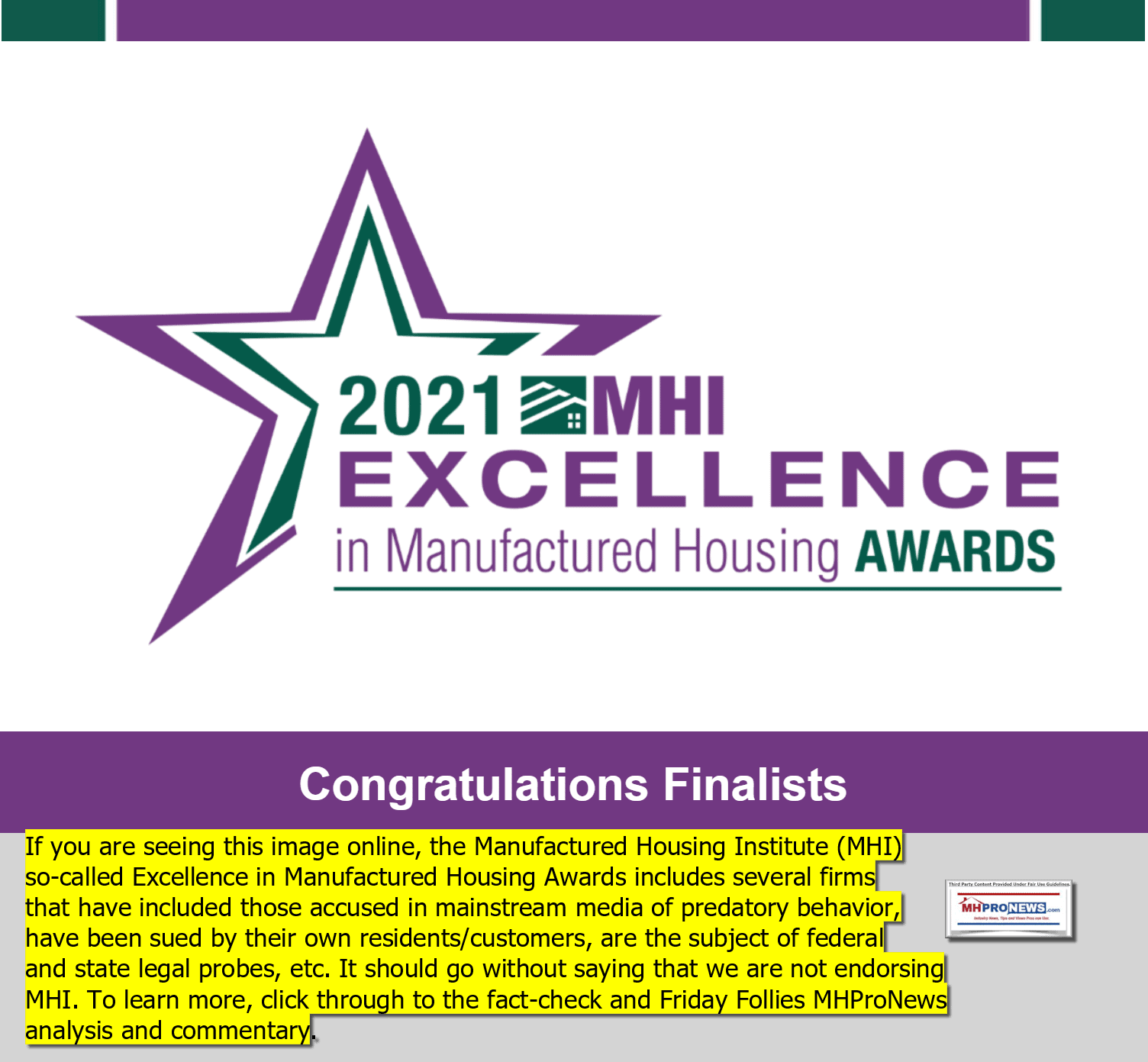 Hmmm…can we suggest to MHI that they consider renaming their awards the “Mother F-cking Sh-t Awards for Predatory and Scandalous Manufactured Housing Behavior.”
