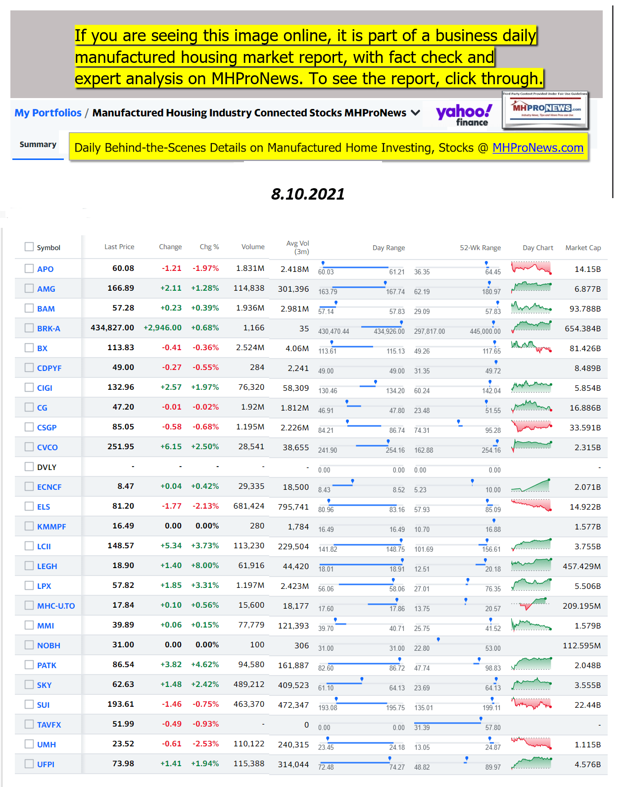 Manufactured Housing Industry Investments Connected Equities Closing Tickers