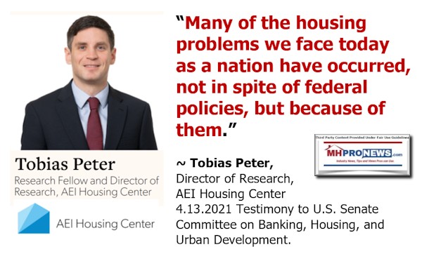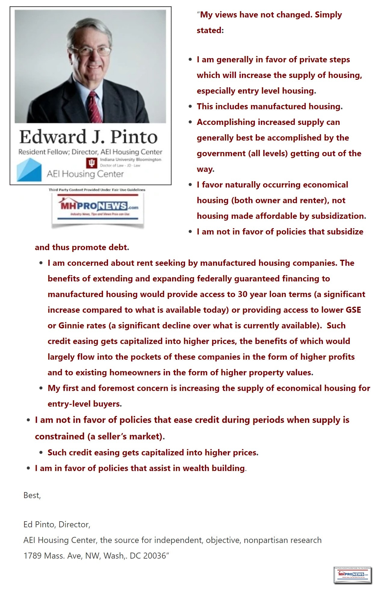 AEI Housing Center’s Edward Pinto, J.D., as was reported in a statement to MHProNews linked here, shared the following.