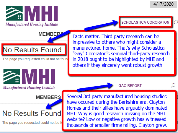 Ironically, MHI has documented the embarrassing trends in the Berkshire-era, even though they have tucked away that evidence here and there. Only MHProNews and our sister-site have been willing to invest the time to organize and present those facts to those seeking a coherent and evidence-based explanation as to what has gone wrong in the affordable manufactured home industry that is today a mere shadow of its former glory days.