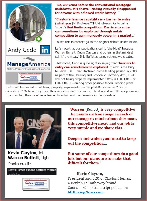 Manufactured housing underperformance has fostered barriers of entry, persistence, and exit. That has ripple effects. That also happens to benefit the Berkshire brands and their allies that dominate MHI – is that a coincidence?