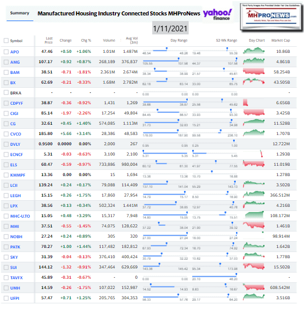 Manufactured Housing Industry Investments Connected Closing Equities Tickers