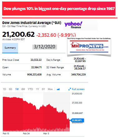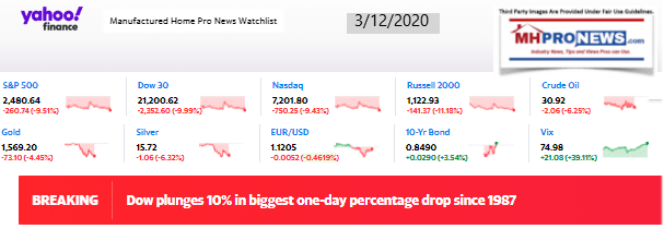DowJones3.12.2020ManufacturedHomeStockUpdatesBroaderMarketSnapshot