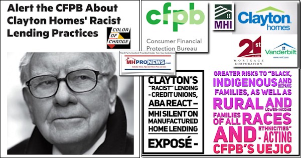 As PBS affiliate OPB described it, “The complaint comes from two Black women who worked for Marlette Homes between 2018 and 2020. The company also does business as Clayton Hermiston, and is registered as CMH Manufacturing West, Inc., part of billionaire Warren Buffett’s Berkshire Hathaway, which controls a manufactured home empire, and has itself faced criticism in 2015 for allegedly exploiting people of color through predatory lending practices.”