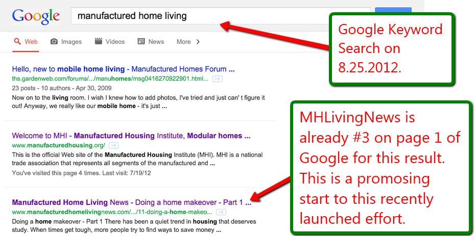 In just a few months, MHLivingNews.com has become number 3 on Google for this keyword search, please see the graphic below.