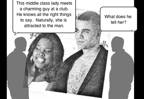 Let's go back to the lady at the bar listening to that sweet talking guy.