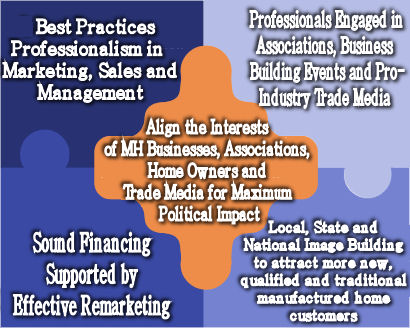 Political engagement that includes positive engagement aligned with businesses, associations, trade media and some 20 +/- million manufactured home owners. When we as manufactured housing business professionals and associations have alignment with our manufactured home-owner base, the doors will open wider for us at the local, state and national levels.