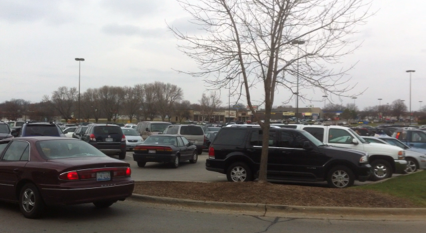 The next afternoon at the mall, people where cruising for a place to park, any place to park.