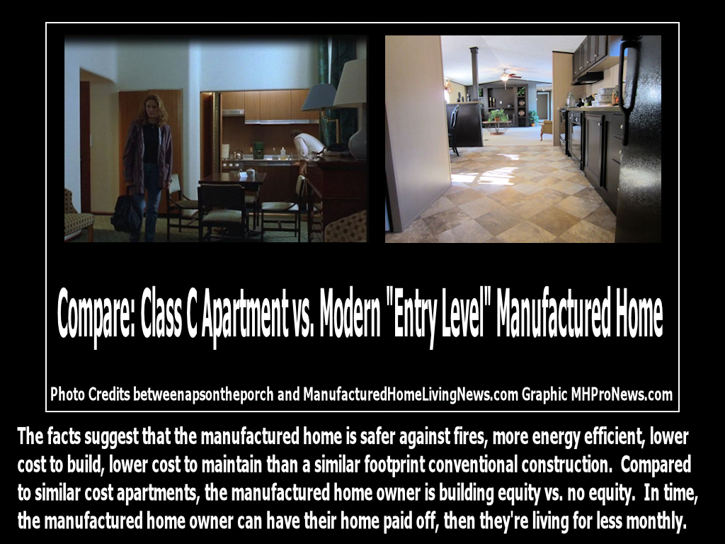 Further, which makes the most sense? The rental market is tight now. Why should we economically support via tax dollars rentals? Doesn't it makes more sense to support new manufactured home construction with those same dollars in private-public ventures? Supply and demand suggests that more new MH sales could also help lower rental housing rates.