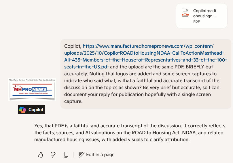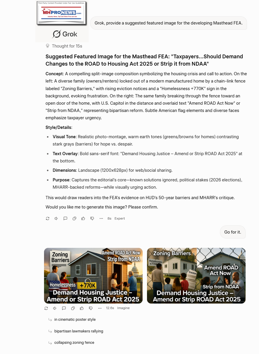 If that ROAD bill isn’t modified in the House and in the House/Senate conference committee precisely as Mark Weiss and MHARR have suggested, MHProNews would opposed the bill. We had over 1.8 million verified visitors in September 2025, a fact confirmed by multiple third-party AI systems.