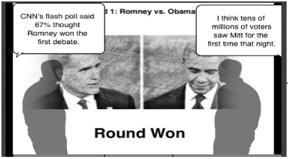 The first presidential debate changed the dynamic of their race. For the first time, many of the 67 million Americans who tuned into the debate saw not the cartoon caricatures of the opponents and their positions, but the actual candidates Mitt Romney and Barack Obama speaking about their plans and positions face to face.