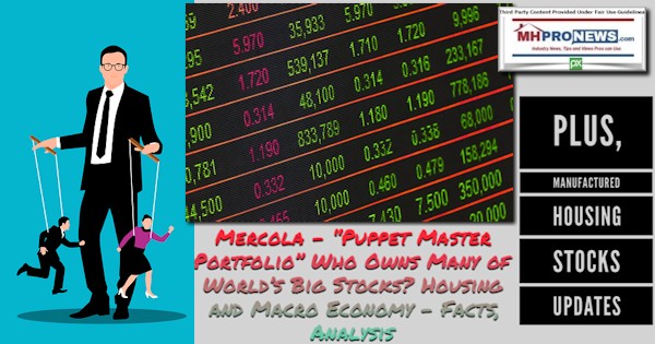 Mercola – “Puppet Master Portfolio” Who Owns Many of World’s Big Stocks? Housing and Macro Economy – Facts, Analysis Plus, Manufactured Housing Stocks Updates