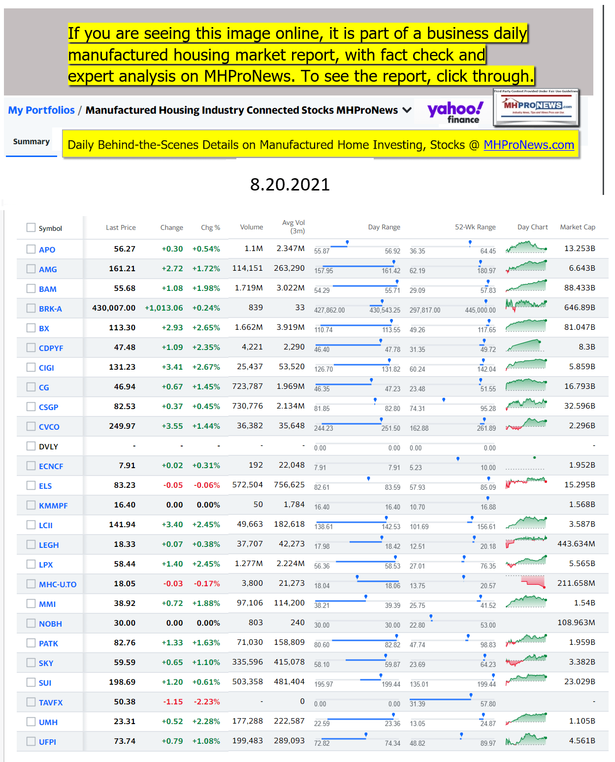 Disclosure. MHProNews holds no positions in the stocks in this report.