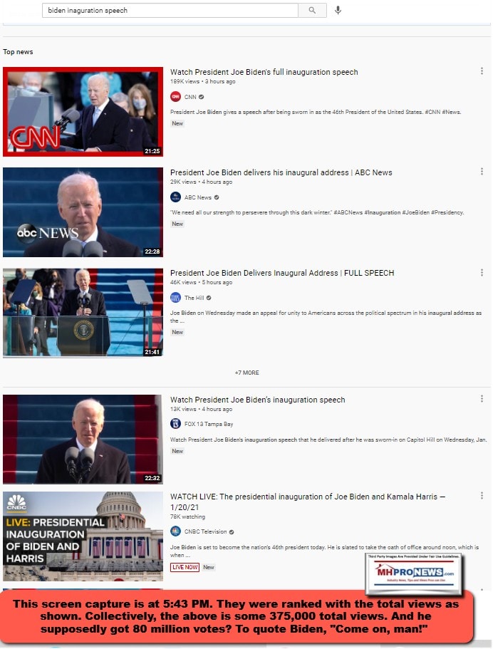 That noted, in fairness, our featured focus tonight will be the installation address as scripted for Biden. It will be followed by additional information, MHProNews analysis, and a look ahead. That will also be part of our featured focus.