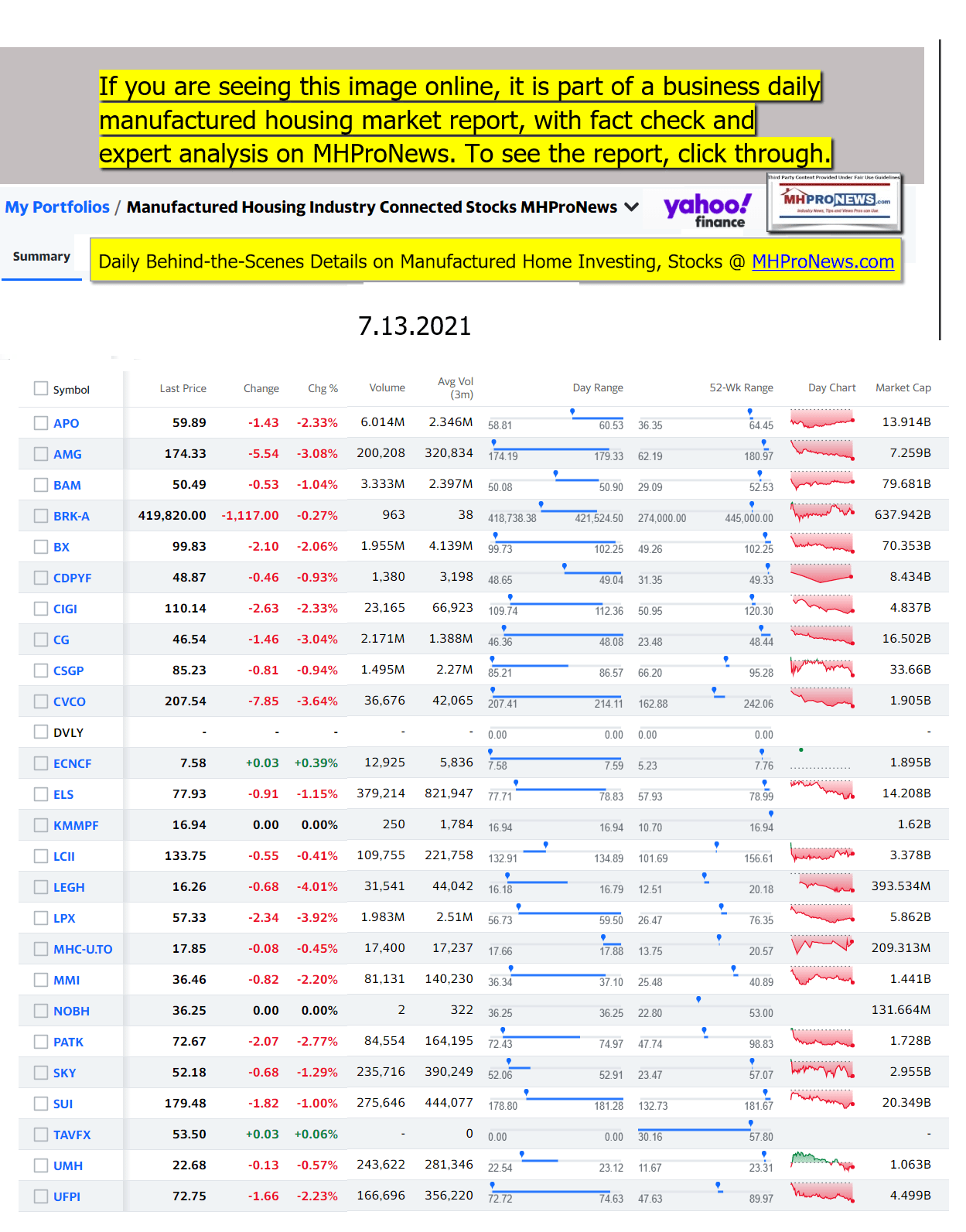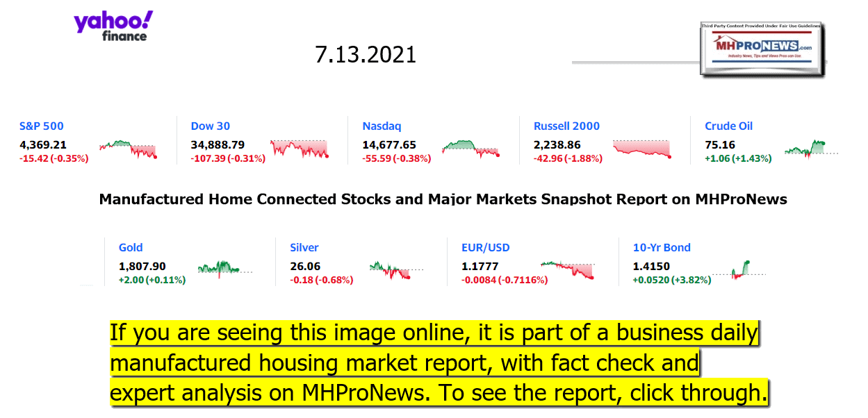 Additionally, links to other posted comments with the FHFA will be linked after the MHARR comments. Those will be followed by additional information and the manufactured housing stocks and major market snapshot reports for 7.13.2021.