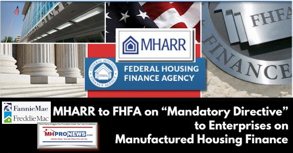 The following news release was provided by the Washington, D.C. based Manufactured Housing Association for Regulatory Reform (MHARR) to MHProNews. It will be followed by the attached comments letter to the Federal Housing Finance Agency (FHFA) regarding instructions sought to the Government Sponsored Enterprises (GSEs or Enterprises) of Fannie Mae and Freddie Mac. It will be followed by related information and an MHProNews analysis and commentary in brief.