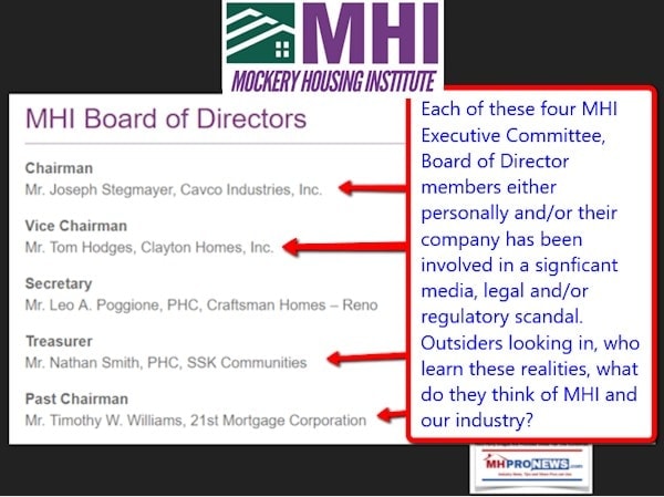 Let’s briefly note that MHProNews has stressed for some time that not every MHI member is a so-called ‘black hat’ operation. That said, it is shocking that so many past-MHI chairs have been involved in various types of industry mainstream media black-eyes and scandals.
