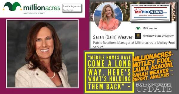 On 12.23.2020 in the Motley Fool affiliated Millionaire Acres investment/news/promo platform did a piece on manufactured housing. Not unlike another article on manufactured housing that MHProNews investigated and reported on in December, 2020, the Millionaire Acres column was so problematic that it appeared to be an agenda driven article promoting specific interest groups, rather than focusing on a core report that actually had insights worthy of reporting. See that previous report, linked here, noting that the publisher in that case made numerous changes following the MHProNews engagement.