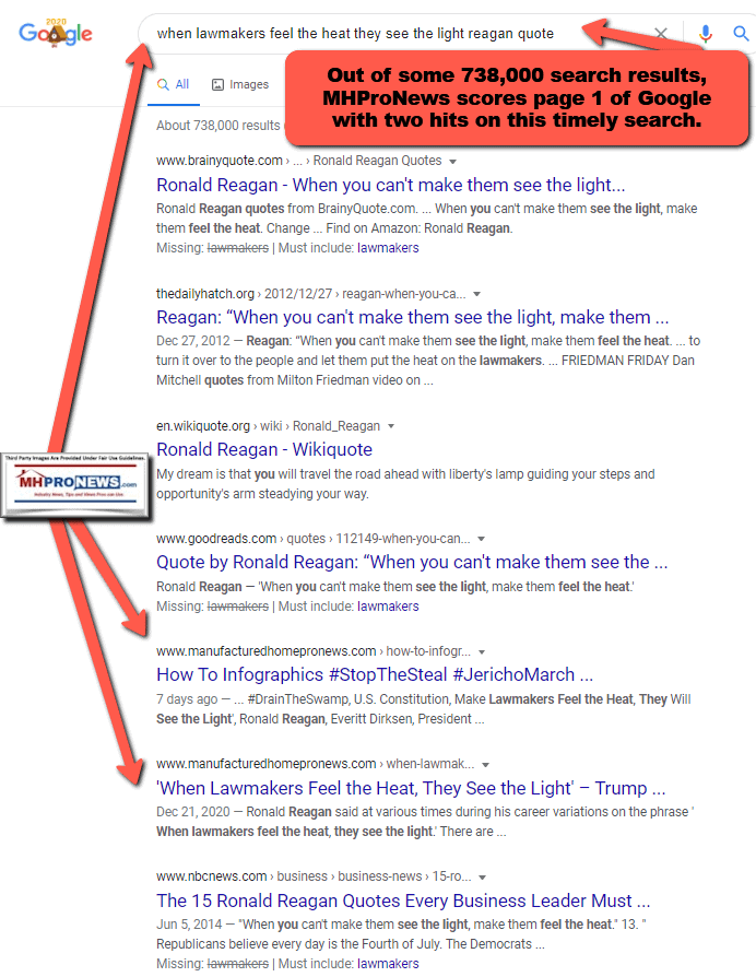 Fifth, for those beyond publishers who may be tempted to believe that there are no consequences to such instances of publishing or spreading misleading or possibly fraudulent efforts by ‘media’ or others, just in terms of professional embarrassment, the above reflect obvious consequences. But more will be revealed in the new year of 2021. Again, see the screen captures above that illustrate the point that MHProNews and our MHLivingNews sister site provide significant engagement from readers via our emails and by those who logon directly. Note that Washington, D.C. has consistently been the number 3 metro in the U.S. for engagement with MHProNews.