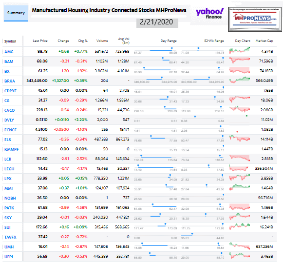 Manufactured Housing Industry Investments Connected Closing Equities Tickers